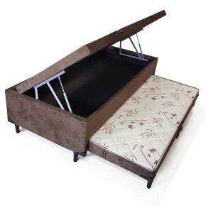 Base Bau Solteiro com Auxiliar 88x188x47 Suede Marrom SR Mov cod:Sr589