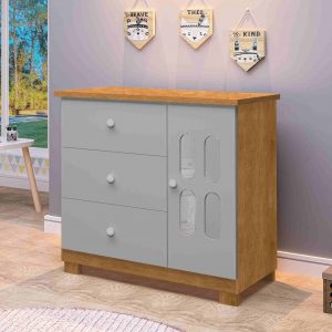 Comoda Sapateira Sophie 3G1P Nature.Cinza J A Moveis cod:sr00249
