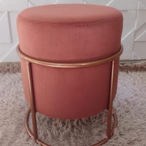 Puff Redondo Thaisa Cromado Linho Cinza Dt Cobre Rio Minas cod:sr0210
