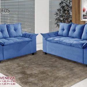Conj Estofado Veneza 2x3Lgs Suede Liso Azul 16 Diviminas cod:sr00579