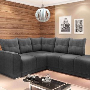 Estofado Canto Munique com Puff Veludo Cinza Best House cod:sr001199