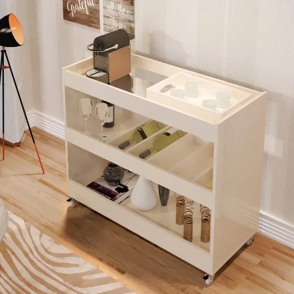 Aparador Bar JB 4030 Luxo, Côr Preto e perola, da JB Bechara, Medidas Alt 0,77m Larg, 0,92m Prof 0,37, com espelho e rodízios de silicone.