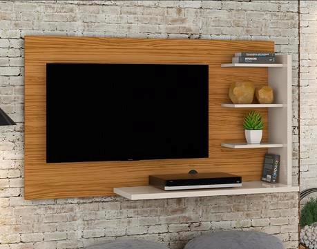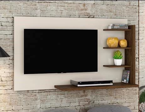 Bancada Suspensa Julia, da Madetec – Medidas: Alt: 0,800m Larg 1,360m Prof: 0,340m, Estrutura 100% MDP de 15mm e 25mm, com 3 Prateiras para Objetos Decorativos e Bancada para Eletroeletrôncios. Ideal para TVs até 42 Polegadas