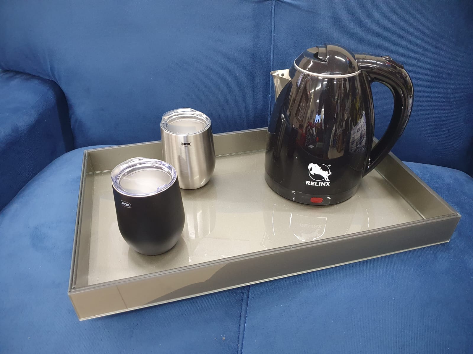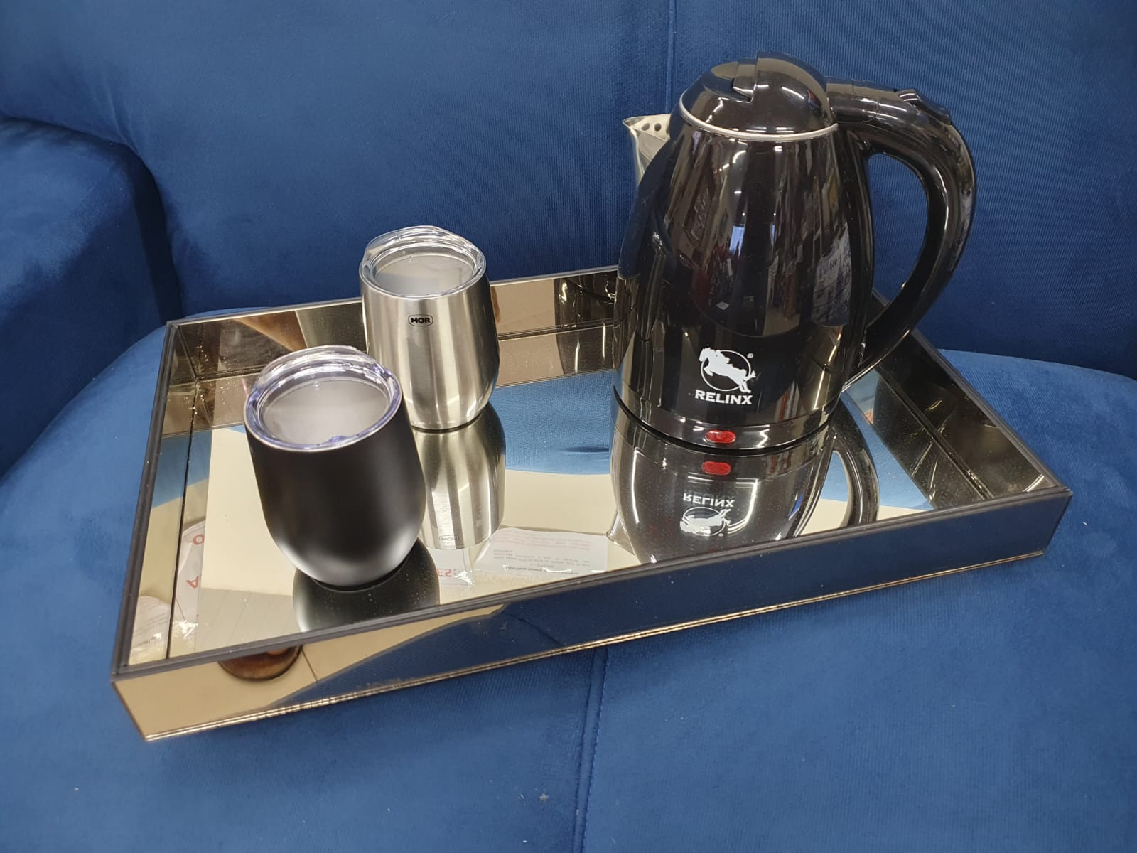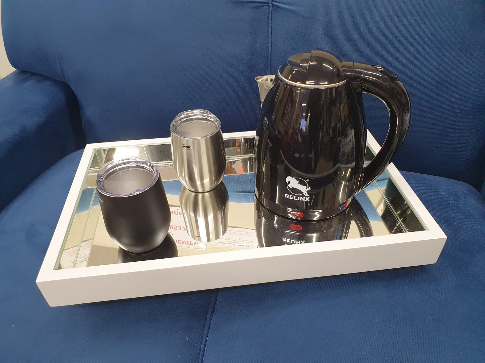 Bandeja Decorativa de Titanio, Côr Off White, da Dias Representações, Medidas: Alt 0,05m Larg 0,50m Prof 0,30m. Laterais em Madeira com Fundo Espelhado.