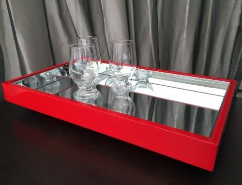 Bandeja Laqueada com Espelho, Côr Tiffany, da Móveis Decoree, Medidas: Alt 0,08m Larg 0,50m Prof 0,30m, 100% MDF, Laquedo Sintético com Espelho.