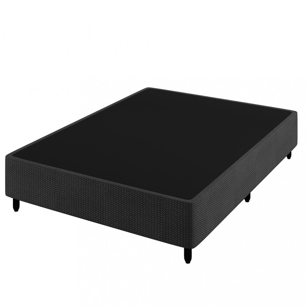 Base Casal SmartBlack, Tecido: Jaquard Code, Côr Preto, Medidas: Alt 0,30m Larg 1,38m Prof 1,88m, Estruruta Vazada em Madeira Maciça Tratada Antimofo e Antifungos, Revestimento Lateral em Jaquard Code, Superior em TNT 100g e Pés Plásticos.