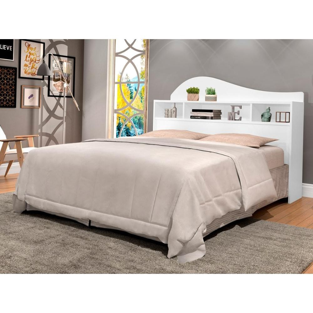 Cabeceira Box Queen Irlanda, Côr Branco, J&A Móveis, Medidas: Alt 1,10m Larg 1,63m Prof 0,215m, Estrutura MDF/MDP, com Prateleira e Nichos com Divisórias para Objetos Pessoais e Decorativos.