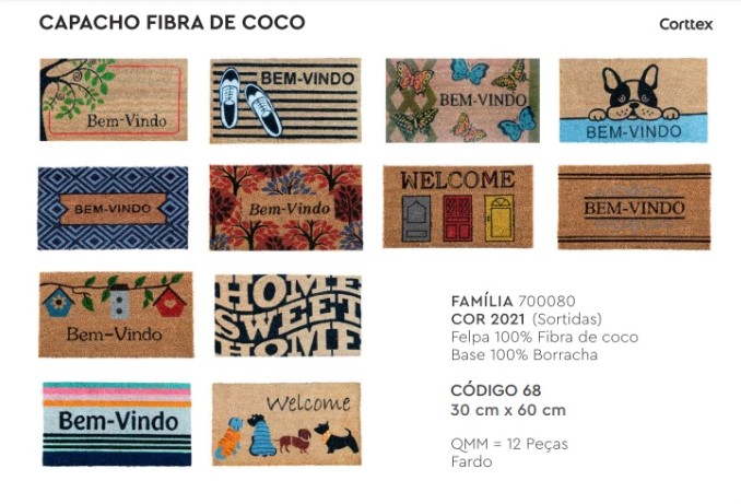 Capacho Fibra de Côdo, Estampas Sortidas, da Corttex, Medidas: 0,30m x 0,60m, Felpa 100% Fibra de Côco e Base 100% Borracha.
