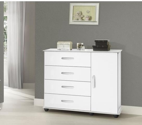 Cômoda Veneza, Côr Amendoa Wood, da Móveis Primus, Medidas: Alt 0,92m Larg 1,080m Prof 0,450m, Estrutra MDP e Tampo em MDF, 4 Gavetas com Corrediças Metálicas, 1 Porta de Bater com Dobradiças Metálicas, 1 Prateleira Interna, Puxadores e Pés Plásticos.