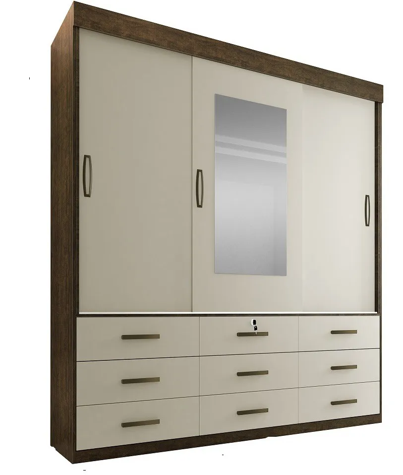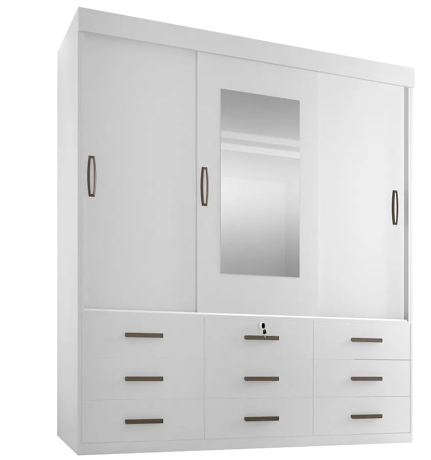 Alt.: 216cm – Larg.: 202cm – Prof.: 52cm – 9 Gavetas – 3 portas de correr – Puxadores embutidos – Gaveta