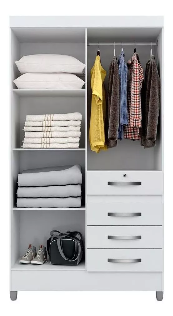 Alt.: 204cm – Larg.: 111cm Prof.: 47cm – MDP/MDF – Corrediças metálicas – Pés em PVC – Uma gaveta
