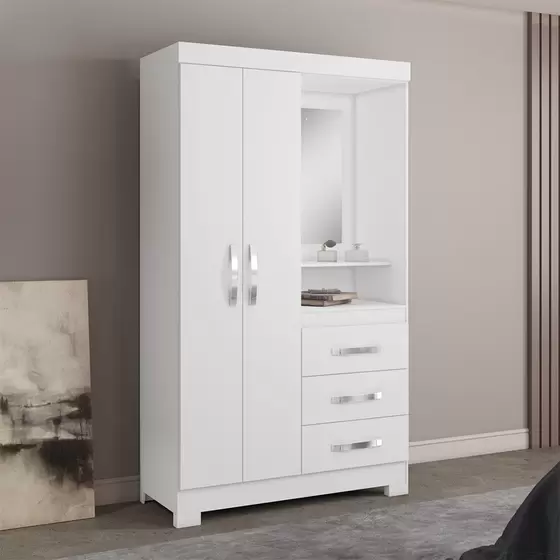 Alt 188cm Larg 108cm Prof 45cm – Puxadores em ABS – Cabideiro Interno – Espelho