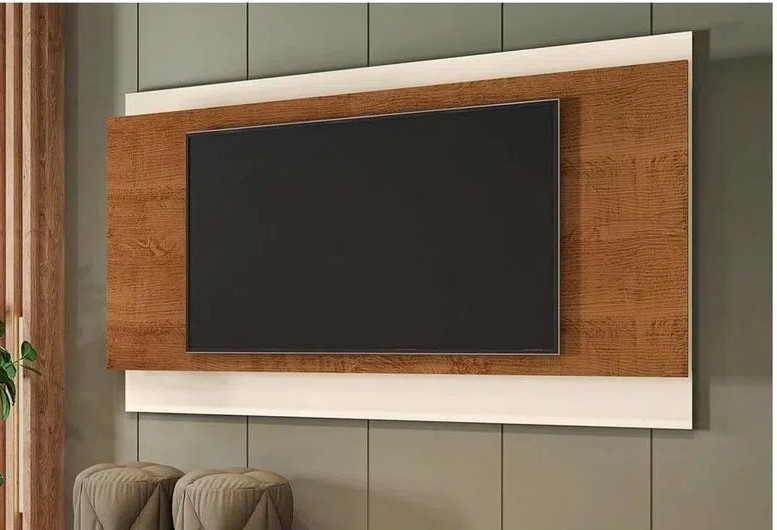 Painel Arcade 1.8, Côr Naature/Off White, da Mobler, Medidas: Alt 1,05m Larg 1,796m Prof 0,115m, Estrutura 100% MDF em Painéis Sobrepostos, com Furação para Passagem de Fios. Ideal para TVs até 75 Polegadas. Faz Conjunto com Bancada Arcade 1.8.