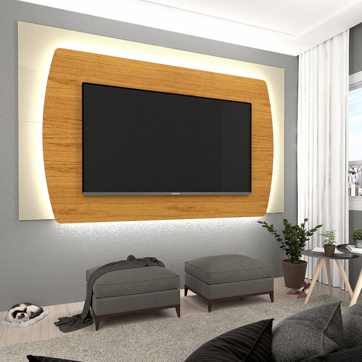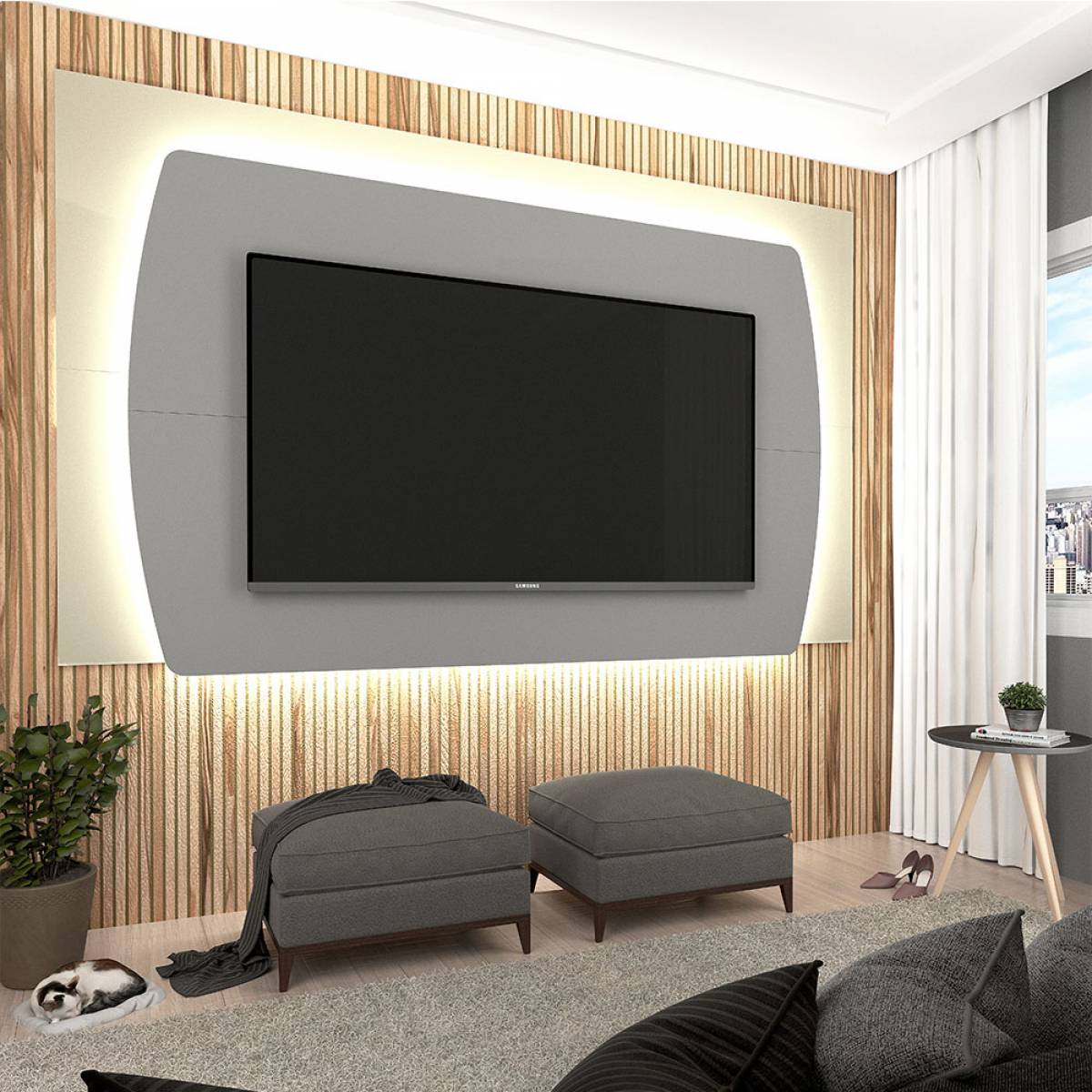 Painel Sublime 180, Côr Cinza/Off White, da Gelius Móveis, Medidas: Alt 1,23m Larg 1,80m Prof 0,07m Peso 45Kg, Estrutura 100% MDP de Paineis Sobrepostos, sendo o Painel Frontal com Bordas Laqueadas e Detalhes Arredondados, Passa Fio. Ideal para TVs até 75 Polegadas. *Observação: Kit Led Sublime 6m Opcional, vendido separadamente*. ***Faça o Combo Painel + Rack, comprando o Rack Sublime 1.8 2G Cinza/Off White.***