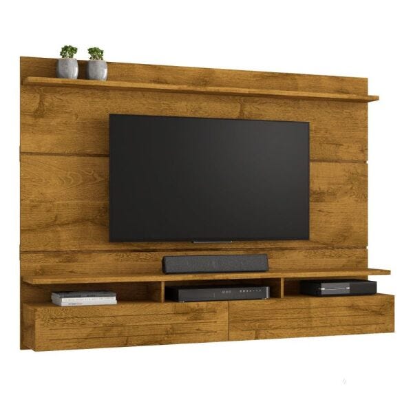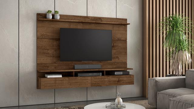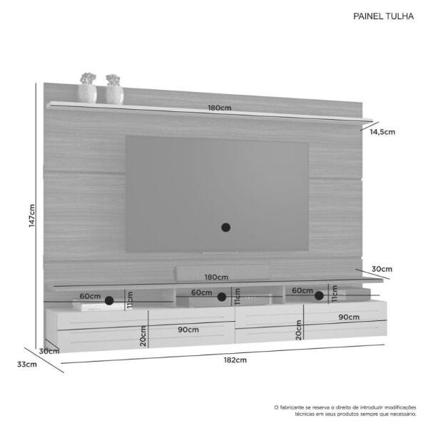 Painel Tulha, Côr Nobre Soft, da JCM Movelaria, Medidas: Alt: 1,47m Larg: 1,82m Prof: 0,33m, com 2 portas, 2 prateleiras e nichos para eletroeletrônicos. Para TVs até 60″ polegadas.
