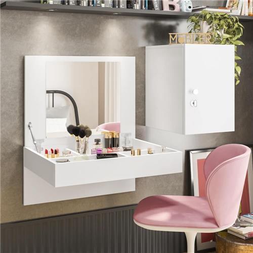 Penteadeira Camarim Diamante, Côr Branco Fosco, Medidas: Penteadeira Alt Aberto 0,767m Alt Fechado 0,465m Larg 0,60m Prof 0,465m – Nicho: Alt 0,465m Larg 0,36m Prof 0,375m, Estrutura 100% MDP. Peteadeira com Porta Basculante com Dobradiças Metálicas e Pistão, Espelho,Nichos para Maquiagens e Objetos. Nicho com Porta de Bater com Dobradiças Metálicas, Prateleira Interna, Puxador Cromado e Chave.