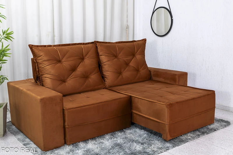 Um sofá retrátil indicado para pessoas com até 150kg.
