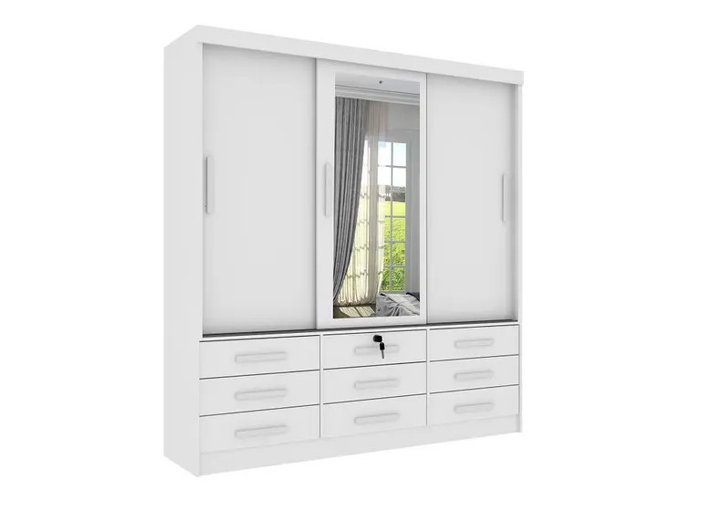 Telescópicas, Puxadores em PVC, Gaveta c/Chave, Cabideiros e Trilho Inf. Alumínio
