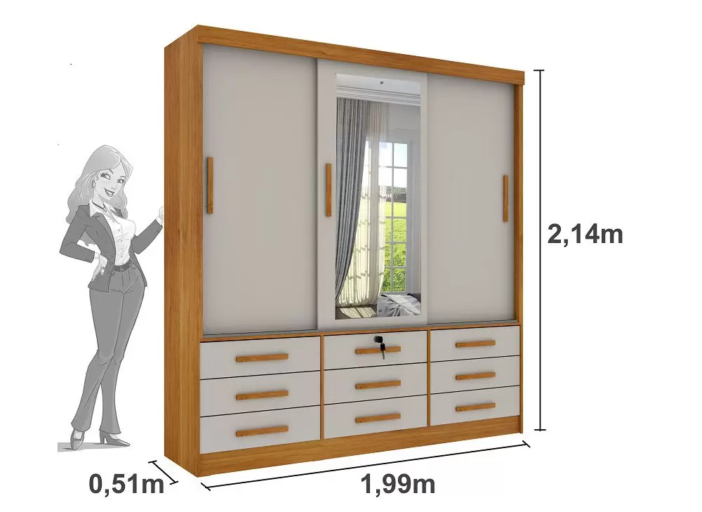 ALT 214 X LARG 199 X PROF 51CM – Produto em MD e MDF, 9 Gavetas Externas, Corrediças